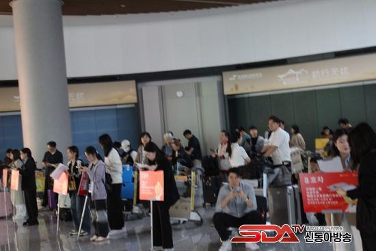 10¿ù 29ÀÏ, Çùȸ ȸ¿ø»ç 150°³¿Í 220¿© ¸íÀÌ ¾Æ½Ã¾Æ³ª Àü¼¼±â¸¦ Ÿ°í Áß±¹ Ç×Á¶¿ì¿¡ µµÂøÇßÁö¸¸, ù ¹øÂ° Àå¾Ö¹°Àº °øÇ׿¡¼ÀÇ 3½Ã°£ ´ë±â¿´´Ù. ÁÖÃÖÃøÀÇ ¹«Ã¥ÀÓÇÑ Áغñ·Î ÀÎÇØ ÀÔ±¹ ¼ö¼Ó ÀýÂ÷°¡ °£¼ÒȵÇÁö ¾Ê¾Æ ȸ¿ø»çµéÀº °íÅëÀ» °Þ¾î¾ß Çß´Ù. µ¿³²¾Æ¿¡¼ ¿Â ´Ù¸¥ ¿©ÇàÀÚµéÀº ½Å¼ÓÇÏ°Ô ÀÔ±¹ÇßÁö¸¸, Çùȸ ȸ¿ø»çµéÀº 2½Ã°£ ÀÌ»óÀ» ´ë±âÇØ¾ß Çß°í, ±× ÈÄ ¹ö½º¸¦ Ÿ±â À§ÇØ ¶Ç 1½Ã°£À» ±â´Ù·Á¾ß Çß´Ù.