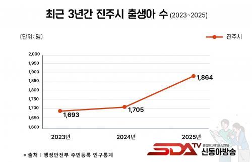 Áö³ 5ÀÏ ÇàÁ¤¾ÈÀüºÎÀÇ Áֹεî·Ï Àα¸Åë°è ¹ßÇ¥¿¡ µû¸£¸é ÁøÁÖ½ÃÀÇ Áֹεî·Ï Ãâ»ý¾Æ ¼ö´Â 2023³â 1693¸íÀ¸·Î ÀúÁ¡À» ÂïÀº ÈÄ, 2024³â 1705¸í, 2025³â 1864¸íÀ¸·Î ¶Ñ·ÇÇÑ Áõ°¡¼¼¸¦ º¸¿´´Ù.