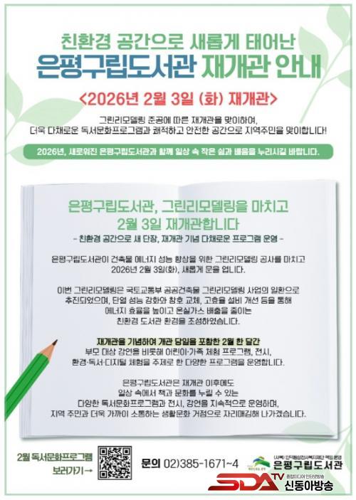 ±è¹Ì°æ ÀºÆò±¸Ã»ÀåÀº ¡°±ä ÈÞ°üÀ» ±â´Ù·ÁÁֽŠÁֹΠ¿©·¯ºÐ²² °¨»çµå¸°´Ù¡±¸ç ¡°Ä£È¯°æÀûÀ̰í ÄèÀûÇÑ ÇнÀ¡¤¹®È °ø°£À» Á¦°øÇÏ°Ô µÈ ¸¸Å, ÀºÆò±¸¸³µµ¼°üÀÌ Áö¿ª»çȸÀÇ Á᫐ °ø°£À¸·Î ÀÚ¸® ÀâÀ» ¼ö ÀÖµµ·Ï Áö¼ÓÀûÀ¸·Î ³ë·ÂÇϰڴ١±°í ¹àÇû´Ù.