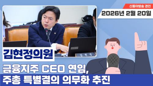 ±èÇöÁ¤ ÀÇ¿øÀº 20ÀÏ ±ÝÀ¶ÁöÁÖȸ»ç ´ëÇ¥À̻簡 ¿¬ÀÓÇÒ °æ¿ì ÁÖÁÖÃÑȸ Ưº°°áÀǸ¦ Àǹ«ÈÇÏ´Â ¡®±ÝÀ¶È¸»çÀÇ Áö¹è±¸Á¶¿¡ °üÇÑ ¹ý·ü¡¯ ÀϺΰ³Á¤¹ý·ü¾ÈÀ» ´ëÇ¥¹ßÀÇÇß´Ù°í ¹àÇû´Ù. ±è ÀÇ¿øÀº ÇöÇà Á¦µµ°¡ ÀÌ»çȸ ³» ÀÓ¿øÈĺ¸ÃßõÀ§¿øÈ¸(ÀÓÃßÀ§) Ãßõ°ú ÀÌ»çȸ °áÀǸ¦ ÅëÇØ ´ëÇ¥À̻縦 ¼±ÀÓÇϵµ·Ï Çϰí ÀÖ¾î, ¿¬ÀÓ °úÁ¤¿¡¼ ÁÖÁÖÀÇ Àǻ簡 ÃæºÐÈ÷ ¹Ý¿µµÇÁö ¾ÊÀ» ¼ö ÀÖ´Ù´Â ¹®Á¦ Á¦±â°¡ À̾îÁ® ¿Ô´Ù°í ¼³¸íÇß´Ù.