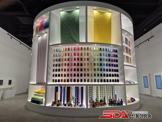 ¶ÇÇÑ ¡®ÆÄ³ë¶ó¸¶ ¿µ»ó½Ç¡¯¿¡¼´Â 4¸é ¹Ìµð¾î¾ÆÆ®°¡ ºû°ú À½¾Ç, ¿µ»óÀ» °áÇÕÇÑ ¸ôÀÔÇü ÄÜÅÙÃ÷°¡ ÆîÃÄÁö¸ç, ½ÇÅ©ÀÇ ºÎµå·¯¿î È帧°ú Áú°¨À» ½Ã°¢ÀûÀ¸·Î ±¸ÇöÇÑ´Ù. °ø°£ Àüü¸¦ °¨½Î´Â ¿µ»ó ¿¬ÃâÀº »ê¾÷ ¼ÒÀç¿´´ø ½ÇÅ©¸¦ ÇϳªÀÇ ¿¹¼úÀû ¡®¿ÀºêÁ¦(Objet)¡¯·Î ÀçÇØ¼®ÇÑ´Ù.