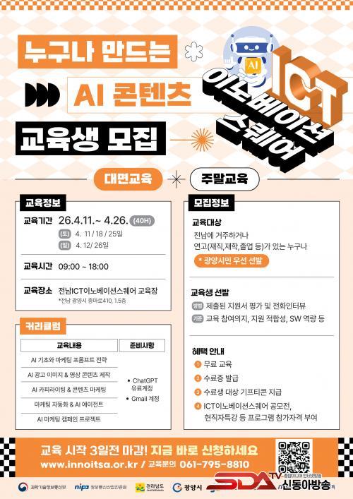 À̹ø ±³À°Àº »ý¼ºÇü ÀΰøÁö´É(AI)À» Ȱ¿ëÇÑ ÄÜÅÙÃ÷ Á¦ÀÛ ¿ª·®À» ³ôÀ̱â À§ÇØ ¸¶·ÃµÆÀ¸¸ç, 4¿ù 11ÀϺÎÅÍ 4¿ù 26ÀϱîÁö ÁÖ¸» 5Àϰ£ ÃÑ 40½Ã°£ °úÁ¤À¸·Î ¿î¿µµÈ´Ù.