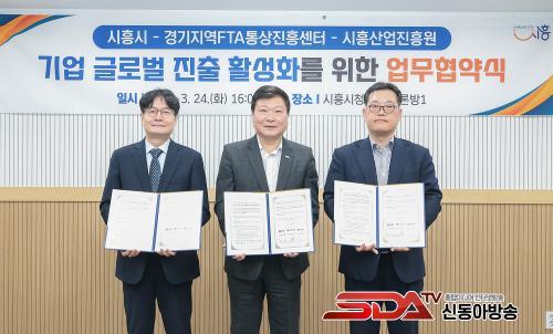 [½Åµ¿¾Æ¹æ¼Û ½ÃÈï½Ã=À̽ŵ¿±âÀÚ] ½ÃÈï½Ã´Â Áö³­ 3¿ù 24ÀÏ ½Ãû Çõ½ÅÅä·Ð¹æ¿¡¼­ °æ±âÁö¿ªFTAÅë»óÁøÈï¼¾ÅÍ, ½ÃÈï»ê¾÷ÁøÈï¿ø°ú °ü³» Áß¼Ò±â¾÷ÀÇ ¼öÃâ È®´ë¿Í ±Û·Î¹ú ÁøÃâ Áö¿øÀ» À§ÇÑ ¾÷¹«Çù¾àÀ» ¸Î¾ú´Ù.
