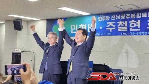 ÁÖöÇö¡¤¹ÎÇü¹è µÎ È帴 ¡°¼öµµ±Ç ÀÏ±Ø Ã¼Á¦¸¦ ³Ñ¾î Àü³²°ú ±¤ÁÖÀÇ ´ëµµ¾àÀ» ¹Ýµå½Ã ÀÌ·ï¾ß ÇÑ´Ù´Â Àý¹ÚÇÔÀ¸·Î ¼ÕÀ» ¸ÂÀâ¾Ò´Ù¡±¸ç ´ÜÀÏÈ ¹è°æÀ» ¼³¸íÇß´Ù. ÀÌ¿¡ µû¶ó ÁÖöÇö È帴 ¹ÎÇü¹è È常¦ ÇâÇÑ ÀüÆøÀûÀÎ ÁöÁö¸¦ ¼±¾ðÇϸç Èĺ¸Á÷À» ³»·Á³õ¾Ò´Ù.