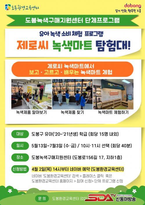ÇÁ·Î±×·¥ ½Åû ´ë»óÀº µµºÀ±¸ Áö¿ª ³» À¯¾Æ ÇбÞÀÌ´Ù. ½ÅûÀº 4¿ù 2ÀÏ ¿ÀÈÄ 2½ÃºÎÅÍ ¼±Âø¼øÀ¸·Î ÁøÇàµÈ´Ù. »ó¼¼ÇÑ ±³À°°úÁ¤°ú ½Åû ¹æ¹ýÀº µµºÀȯ°æ±³À°¼¾ÅÍ ´©¸®Áý¿¡¼ È®ÀÎ °¡´ÉÇÏ´Ù.