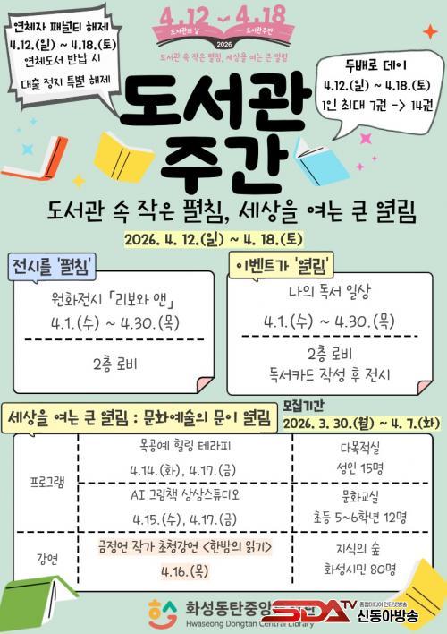 À±¹Ì¿µ µµ¼°üÁ¤Ã¥°úÀåÀº ¡°È¼ºµ¿ÅºÁß¾Óµµ¼°üÀÌ Ã³À½À¸·Î µµ¼°üÁÖ°£À» ¸ÂÀÌÇÏ´Â ¸¸Å, ½Ã¹ÎµéÀÌ µ¶¼¿Í ¹®È¸¦ ÇÔ²² Áñ±â¸ç »îÀÇ Ç³¿ä¸¦ ´À³¥ ¼ö ÀÖµµ·Ï ´Ù¾çÇÑ ÇÁ·Î±×·¥À» ¸¶·ÃÇß´Ù¡±¸ç,¡°AI ±×¸²Ã¥ üÇèºÎÅÍ ¸ñ°ø¿¹ Èú¸µ Å×¶óÇÇ, ÀÛ°¡ ÃÊû °¿¬ µî ´Ùä·Î¿î Çà»ç¸¦ ÅëÇØ ½Ã¹ÎµéÀÌ Ã¢ÀǷ°ú °¨¼ºÀ» Ű¿ì°í, ÀÏ»ó ¼Ó¿¡¼ ¹®ÈÀû Áñ°Å¿ò°ú ¹è¿òÀÇ ±âȸ¸¦ ´©¸± ¼ö ÀÖµµ·Ï ³ë·ÂÇϰڴ١±°í ¹àÇû´Ù.