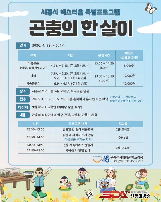 ¼¼ºÎ ÇÁ·Î±×·¥Àº ÁÖÁ¦º°·Î ³ª´² ¿î¿µµÈ´Ù. ¡ã4¿ù 28ÀϺÎÅÍ 5¿ù 13ÀϱîÁö ½Ä¿ë°ïÃæ(¹Ð¿ú, ½Öº°±Í¶Ñ¶ó¹Ì) ÁÖÁ¦·Î ÁÖ 2ȸ ¿î¿µµÇ¸ç Âü°¡ºñ´Â 3õ ¿ø ¡ã5¿ù 19ÀϺÎÅÍ 6¿ù 2ÀϱîÁö´Â ³ªºñ¸¦ ÁÖÁ¦·Î ÁÖ 1~2ȸ ¿î¿µµÇ¸ç Âü°¡ºñ 1¸¸ ¿ø ¡ã6¿ù 9ÀϺÎÅÍ 6¿ù 17ÀϱîÁö´Â »ç½¿Ç³µÀ̸¦ ÁÖÁ¦·Î ÁÖ 1ȸ ¿î¿µµÇ¸ç Âü°¡ºñ 1¸¸5õ ¿øÀÌ´Ù.