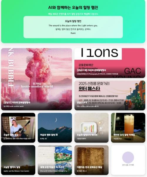 [½Åµ¿¾Æ¹æ¼Û °­³²±¸=À̽ŵ¿±âÀÚ] ²ÞÀÌ ¸ðÀÌ´Â µµ½Ã, ¹Ì·¡¸¦ ±×¸®´Â °­³²±¸°¡ ÷´Ü AI ±â¼ú¿¡ µû¶æÇÑ °¨¼ºÀ» ÀÔÈù µðÁöÅÐ Èú¸µ À¥Áø ¡®ÇÏÀÌ(HAI)¡¯¸¦ °­³²Èú¸µ¼¾ÅÍ È¨ÆäÀÌÁö¸¦ ÅëÇØ ¼±º¸ÀδÙ. ¡®Healing AI¡¯ÀÇ ÁÙÀÓ¸»ÀÌÀÚ ¹Ý°¡¿î Àλ縦 ÀǹÌÇÏ´Â ¡®ÇÏÀÌ(HAI)¡¯´Â °Ë¡¦