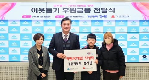 [½Åµ¿¾Æ¹æ¼Û ÀÎõ=À±¹Î½Ä±âÀÚ]ÀÎõ ¹ÌÃßȦ±¸(±¸Ã»Àå ÀÌ¿µÈÆ)´Â Áö³­ 9ÀÏ ¸íÀýÀ» ¾ÕµÎ°í Áö¿ª»çȸ¸¦ µû¶æÇÏ°Ô ¸¸µå´Â ÀÌ¿ôµ½±â ÈÄ¿ø ¹°Ç° Àü´Þ½ÄÀÌ ÀÕµû¶ó ¿­·È´Ù. °³ÀαâºÎÀÚ ¹Îõ±â ¾¾´Â ¾î·Á¿î ÀÌ¿ôµéÀÌ µçµçÇÑ ¸íÀýÀ» º¸³¾ ¼ö ÀÖµµ·Ï »ç¶ûÀÇ ½Ò 100Æ÷¸¦ ÈÄ¿øÇß´Ù¡¦