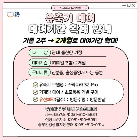 [½Åµ¿¾Æ¹æ¼Û ½ÃÈï½Ã=À̽ŵ¿±âÀÚ] ½ÃÈï½Ã´Â Ãâ»ê°¡Á¤ÀÇ °æÁ¦Àû ºÎ´ãÀ» ¿ÏÈ­Çϰí, ¾ÈÁ¤ÀûÀÎ ¸ðÀ¯¼öÀ¯ ȯ°æÀ» Áö¿øÇϱâ À§ÇØ 3¿ùºÎÅÍ À¯Ãà±â ´ë¿© ±â°£À» ±âÁ¸ 2ÁÖ¿¡¼­ 2°³¿ù·Î È®´ë ½ÃÇàÇÑ´Ù. ±×µ¿¾È À¯Ãà±â ´ë¿© ±â°£ÀÌ Âª¾Æ Ãß°¡ ´ë¿©¸¦ ¿øÇÏ´Â »ê¸ðµéÀÇ ¿ä±¸°¡ ²ÙÁØ¡¦