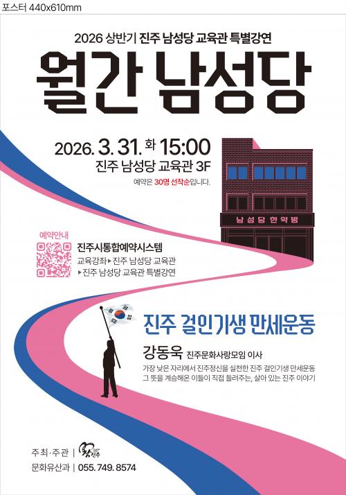 [½Åµ¿¾Æ¹æ¼Û °æ³²ÁøÁÖ=±è¸í¼ö±âÀÚ] ÁøÁֽô ½Ã¹Î°ú °ü±¤°´À» ´ë»óÀ¸·Î ÁøÁÖ ³²¼º´ç ±³À°°ü¿¡¼­ Àι®¡¤¹®È­ °­Á ÇÁ·Î±×·¥ÀÎ ¡®¿ù°£ ³²¼º´ç¡¯ Ưº°°­¿¬À» »ó¹Ý±â¿¡ ÃÑ 4ȸ ¿î¿µÇÑ´Ù°í ¹àÇû´Ù. ¡®¿ù°£ ³²¼º´ç¡¯Àº ±èÀåÇÏ ¼±»ýÀÇ ³ª´®°ú ¹è·ÁÀÇ Á¤½ÅÀ» ¹ÙÅÁÀ¸·Î, ÁøÁÖ ¡¦