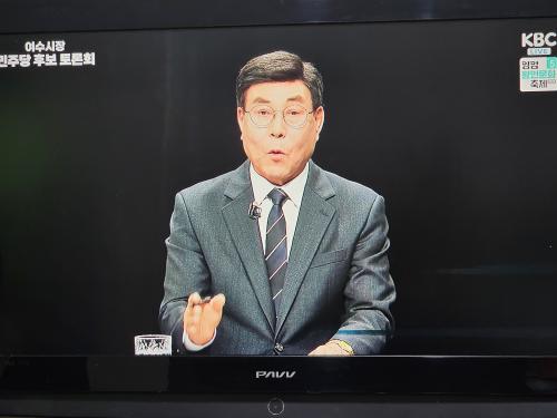 [½Åµ¿¾Æ¹æ¼ÛÀü³²¿©¼ö=±è±â³² ±âÀÚ] ¹Î¼± 9±â ¿©¼ö½ÃÀå ¼±°Å¿¡ ³ª¼± ´õºÒ¾î¹ÎÁÖ´ç ±è¿µ±Ô ¿¹ºñÈĺ¸(Çö ¹ÎÁÖ´ç Áß¾Ó´ç Á¤Ã¥À§ ºÎÀÇÀå)°¡ 30ÀÏ ¿ÀÈÄ 3½Ã 30ºÐ ÁøÇàµÈ kbc±¤ÁÖ¹æ¼Û ÃÊû ¿¹ºñÈĺ¸ Åä·Ðȸ¿¡¼­ ¡®ÁغñµÈ ½ÃÀ塯À¸·Î¼­ÀÇ Á¸Àç°¨À» ¼±º¸¿´´Ù. ¿¹ºñ°æ¼± ù¡¦