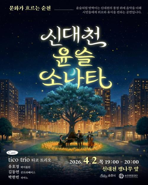 [½Åµ¿¾Æ¹æ¼Û ¼øÃµ=±è¿ëÈÆ ±âÀÚ] Àç´Ü¹ýÀÎ ¼øÃµ¹®È­Àç´ÜÀº ¿À´Â 4¿ù 2ÀÏ ¸ñ¿äÀÏ, Àú³á 7½ÃºÎÅÍ ÇÑ ½Ã°£ µ¿¾È ½Å´ëõ ÆØ³ª¹« ¾Õ¿¡¼­ °íǰ°Ý ¾ß°£ Ŭ·¡½Ä °ø¿¬ <½Å´ëõ, À±½½¼Ò³ªÅ¸>¸¦ °³ÃÖÇÑ´Ù°í ¹àÇû´Ù. ¼­¿ï¿¡ û°èõÀÌ ÀÖ´Ù¸é, ¼øÃµÀº µµ½É ¼Ó ÇѰ¡¿îµ¥ ½Å´ëõÀÌ ÀÖ¡¦