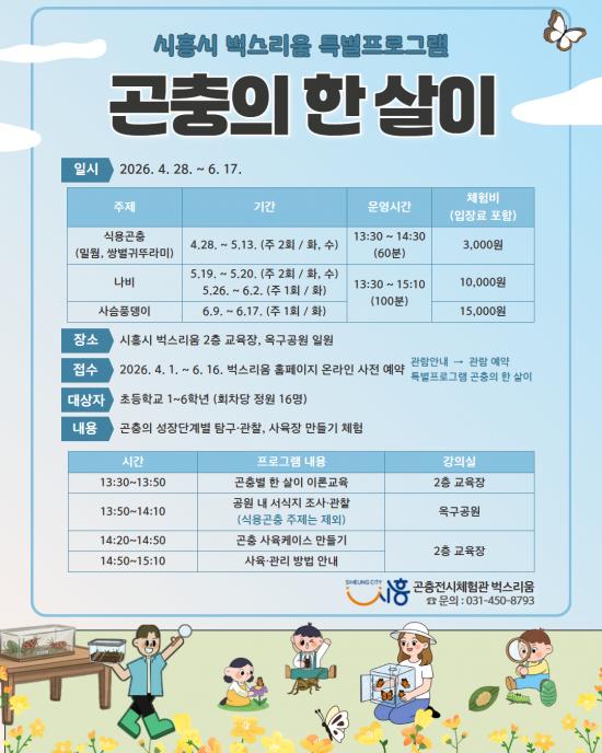 [½Åµ¿¾Æ¹æ¼Û ½ÃÈï½Ã=À̽ŵ¿±âÀÚ] ½ÃÈï½Ã °ïÃæÃ¼ÇèÀü½Ã°ü ¡®¹÷½º¸®¿ò¡¯Àº ¿À´Â 4¿ù 28ÀϺÎÅÍ 6¿ù 17ÀϱîÁö ÃʵîÇлýÀ» ´ë»óÀ¸·Î Ưº°ÇÁ·Î±×·¥ ¡®°ïÃæÀÇ ÇÑ »ìÀÌ¡¯¸¦ ¿î¿µÇÑ´Ù. À̹ø ÇÁ·Î±×·¥Àº ÃʵîÇлýµéÀÌ °ïÃæÀÇ ¼ºÀå °úÁ¤À» Á÷Á¢ ޱ¸¤ý°üÂûÇÏ¸ç »ýŸ¦ ÀÌÇØÇÒ ¼ö¡¦