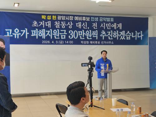 ¹Ú¼ºÇö ±¤¾ç½ÃÀå ¿¹ºñÈĺ¸ ¡°Ã¶µ¿»ó ´ë½Å ½Ã¹Î¡±¡¦ Àü ½Ã¹Î 30¸¸¿ø Áö¿ø ÃßÁø ¹àÇô