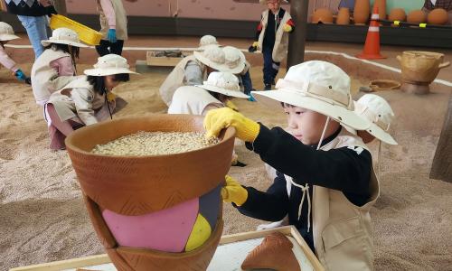 üÇèÀº Á¤À¾¿¡¼ ¹ß°ßµÈ À¯ÀûÀ» ±×´ë·Î ÀçÇöÇÑ ¹ß±¼ üÇèÀå¿¡¼ ÀÌ·ïÁø´Ù. Âü°¡ ¾î¸°À̵éÀº ¹ß±¼ µµ±¸¸¦ »ç¿ëÇØ ¸ð·¡ ¼Ó¿¡ ¼û°ÜÁø À¯¹°µéÀ» ã¾Æ³»°í, Àü¹®°¡ÀÇ µµ¿òÀ» ¹Þ¾Æ À¯¹°ÀÇ ÀÇ¹Ì¿Í °¡Ä¡¸¦ ޱ¸ÇÏ´Â ½Ã°£À» °¡Áø´Ù. ÀÌ °úÁ¤À» ÅëÇØ ¾ÆÀ̵éÀº À¯¹° ¹ß±¼ÀÇ Àç¹Ì»Ó¸¸ ¾Æ´Ï¶ó ¹®ÈÀ¯»ê º¸Á¸ÀÇ Á߿伺µµ ÀÚ¿¬½º·´°Ô ÀÍÈ÷°Ô µÈ´Ù.