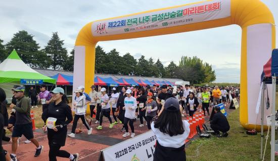 ³ªÁÖ½Ã(½ÃÀå À±º´ÅÂ)´Â Áö³­ 10ÀÏ ³ªÁÖ¸¶¶óÅæµ¿È£È¸, ³ªÁÖÀ°»ó¿¬¸ÍÀÌ ÁÖÃÖ¡¤ÁÖ°üÇÏ´Â ¡®Á¦22ȸ ±Ý¼º»ê ½£±æ ¸¶¶óÅæ ´ëȸ¡¯°¡ µ¿½Å´ëÇб³, ±Ý¼º»ê ÀÏ¿ø¼­ °³Ãֵƴٰí 12ÀÏ ¹àÇû´Ù.