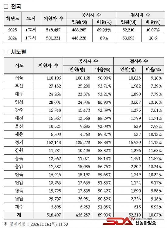 2025Çг⵵ ´ëÇмöÇдɷ½ÃÇè 1±³½Ã ÀÀ½ÃÀÚ ÇöȲ