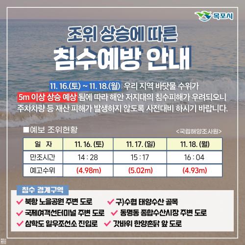 ÇÑÆí, ¸ñÆ÷½Ã´Â ¹Ù´å¹° ¼öÀ§°¡ Á¶¼®Ç¥»ó Á¶°í 4.90mÀÌ»óÀÏ °æ¿ì ÇØ¼ö À§ÇèÀÏ·Î ÁöÁ¤ÇØ ½Ã¹ÎµéÀÇ Àç»êÇÇÇØ°¡ ¹ß»ýÇÏÁö ¾Êµµ·Ï ħ¼öÇÇÇØ ¿¹¹æ¿¡ Àû±Ø ´ëóÇϰí ÀÖ´Ù.