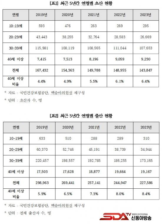 ¹é½Â¾Æ ÀÇ¿ø, Ãâ»êÀ² °¨¼ÒÇϴµ¥ ÀÛ³â 40´ë ÀÌ»ó ÃÊ»êÀº 9õ¿©¸í, 4³â»õ 24.5% Áõ°¡ ... Á¤ºÎ °¢º°ÇÑ Áö¿ø ÇÊ¿ä