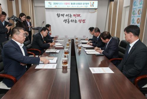 À̳¯ Çù¾à½Ä¿¡´Â ¿À¼ºÈ¯ ´çÁø½ÃÀå, °ûÁ¤Çö KGÄɹÌÄ® ´ëÇ¥ÀÌ»ç, ¹Ú¼ºÈñ KG½ºÆ¿ ´ëÇ¥ÀÌ»ç, ¹Ú½Â¼® ´çÁøÇسª·ç½ÒÁ¶ÇÕ°øµ¿»ç¾÷¹ýÀÎ ´ëÇ¥À̻簡 Âü¼®ÇÑ °¡¿îµ¥ ÇØ³ª·ç½Ò µî ´çÁø ³ó»ê¹° °ø±Þ Ȱ¼ºÈ¸¦ À§ÇØ »óÈ£ Çù·ÂÀ» ´ÙÁüÇß´Ù.