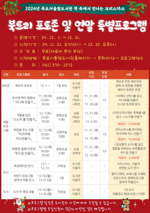 ÇÁ·Î±×·¥ Âü¿©´Â ¸ñÆ÷½ÃÅëÇÕµµ¼°ü ´©¸®ÁýÀ» ÅëÇØ 21ÀϺÎÅÍ ¼±Âø¼ø 15¸í, ¼ö°·á´Â ¹«·á·Î ½Åû °¡´ÉÇϸç, µµ¼°ü ÀÌ¿ëÀÚ ¹× Áö¿ª ÁֹΠ´©±¸³ª Âü¿© °¡´ÉÇÏ´Ù. ÀÚ¼¼ÇÑ ³»¿ëÀº ´©¸®Áý °øÁö»çÇ×À» È®ÀÎÇϰųª ¸ñÆ÷¾î¿ï¸²µµ¼°ü(061-270-1272)À¸·Î ¹®ÀÇÇÏ¸é µÈ´Ù.