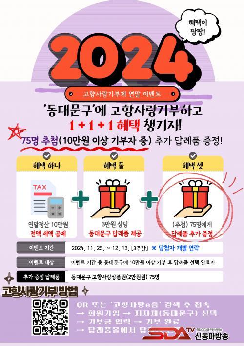 ¡®¿Â¶óÀÎ °íÇâ»ç¶ûeÀ½¡¯ ¶Ç´Â ¡®NH³óÇù¡¯À» ÅëÇØ ¼¿ï µ¿´ë¹®±¸¿¡ 10¸¸¿ø ÀÌ»ó ±âºÎÇÏ°í ´ä·Êǰ ½ÅûÀ» ¿Ï·áÇϸé ÀÚµ¿À¸·Î ÀÀ¸ðµÈ´Ù.