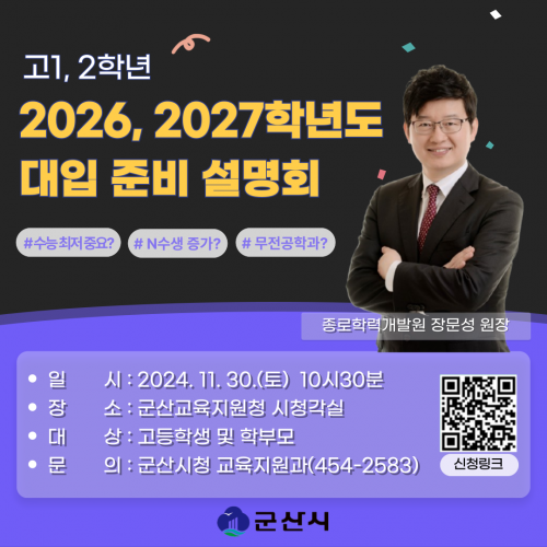 Ư° ½ÅûÀº ¿Â¶óÀÎ Á¢¼ö(https://forms.gle/ohw2nNEAoqfnUQVn8)¸¦ ÅëÇØ °¡´ÉÇϸç, ÀÚ¼¼ÇÑ ³»¿ëÀº ±º»ê½Ãû ±³À°Áö¿ø°ú(063-454-2583)·Î ¹®ÀÇÇÏ¸é µÈ´Ù.