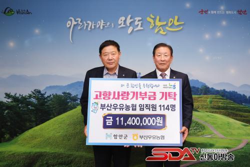 ¾Æ¿ï·¯ Á¶±ÙÁ¦ ÇԾȱº¼ö´Â ¡°°íÇâ»ç¶û±âºÎÁ¦¿¡ µ¿ÂüÇØÁֽŠºÎ»ê¿ìÀ¯³óÇù ÀÓÁ÷¿ø ¿©·¯ºÐ²² °¨»çµå¸®¸ç, ¼ÒÁßÇÑ ±âºÎ±ÝÀº ÇÔ¾È ¹ßÀüÀ» À§ÇØ ²À ÇÊ¿äÇÑ °÷¿¡ »ç¿ëÇϰڴ١±°í È´äÇß´Ù.
