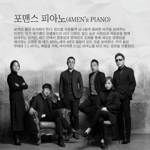 2ȸÂ÷ °ø¿¬ÀÇ ÁÖÀΰøÀÎ Æ÷¸Ç½º ÇǾƳë(4Men¡¯s Piano)´Â ±¹³» ÃÖÁ¤»ó±Þ ÇǾƴϽºÆ® 4ÀÎÀ¸·Î ±¸¼ºµÈ¡®´©±¸µµ Èä³» ³¾ ¼ö ¾ø´Â °Ç¹Ý À§ Ȳ±Ý ¼Õ°¡¶ô¡¯À̶ó°í ºÒ¸®´Â ÀçÁî ÇÇ¾Æ³ë ±×·ìÀ¸·Î, À̹ø °ø¿¬¿¡¼ ¸â¹ö °£ È·ÁÇÑ ÇÇ¾Æ³ë ¹èÆ²·Î ¡®Spain¡¯, ¡®Shape of My Heart¡¯, ¡®The Girl from Ipanema¡¯ µîÀÇ ¸í°îÀ» ÇÇ¾Æ³ë ¾Ó»óºí·Î ÀçÇØ¼®ÇÒ ¿¹Á¤ÀÌ´Ù.
