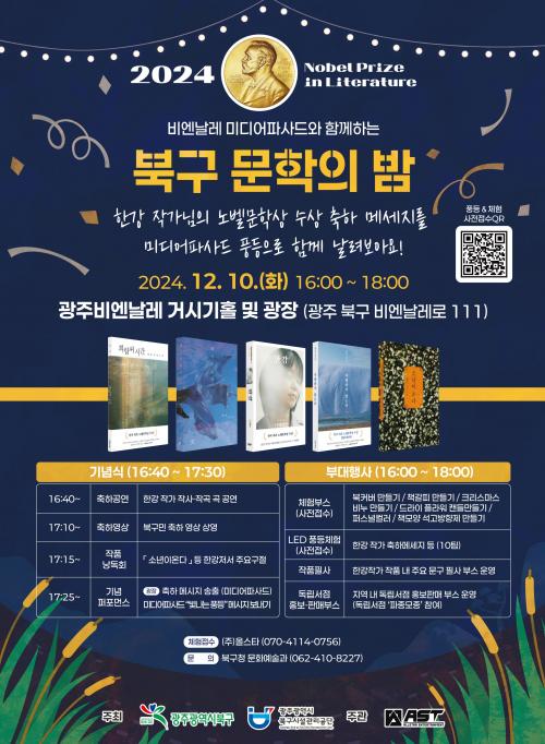 28ÀÏ ºÏ±¸¿¡ µû¸£¸é ´Ù°¡¿À´Â ¡®ÇѰ ÀÛ°¡ ³ëº§¹®Çлó ½Ã»ó½Ä¡¯À» ±â³äÇÏ¿© ¿À´Â 12¿ù 10ÀÏ ¿ÀÈÄ 4½Ã ±¤ÁÖºñ¿£³¯·¹ °Å½Ã±âȦ°ú ºñ¿£³¯·¹ ±¤Àå¿¡¼ ¡®¹Ìµð¾îÆÄ»çµå¿Í ÇÔ²²ÇÏ´Â ºÏ±¸ ¹®ÇÐÀÇ ¹ã¡¯ Çà»ç°¡ °³ÃֵȴÙ.