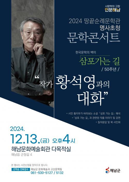 Çà»ç´Â ÇØ³² Ãâ½ÅÀÇ È²Áö¿ì ½ÃÀÎÀÌ ¹Ù¶óº» 「»ïÆ÷ °¡´Â ±æ」 ÇØ¼®°ú ÇÔ²² Ȳ¼®¿µ ¼Ò¼³°¡ÀÇ ÀÛǰ ÀÌ¾ß±â ¹× °¿¬, ÁúÀÇÀÀ´ä, ºÏ »çÀÎȸ µî ¼øÀ¸·Î 2½Ã°£ °¡·® ÁøÇàµÉ ¿¹Á¤ÀÌ´Ù.