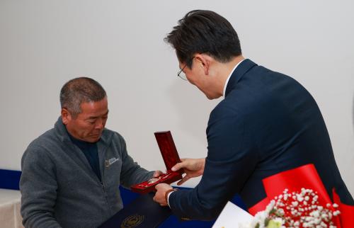 À̳¯ Àü¼ö½Ä¿¡¼ ȶû¹«°øÈÆÀåÀº, ÀÓ ÀϺ´ÀÇ Á¶Ä«ÀÎ Çлê¸é Áö¼Ò¸¶À»ÀÇ Àӱ⼮ ¾¾¿¡°Ô Àü¼öµÆ´Ù.