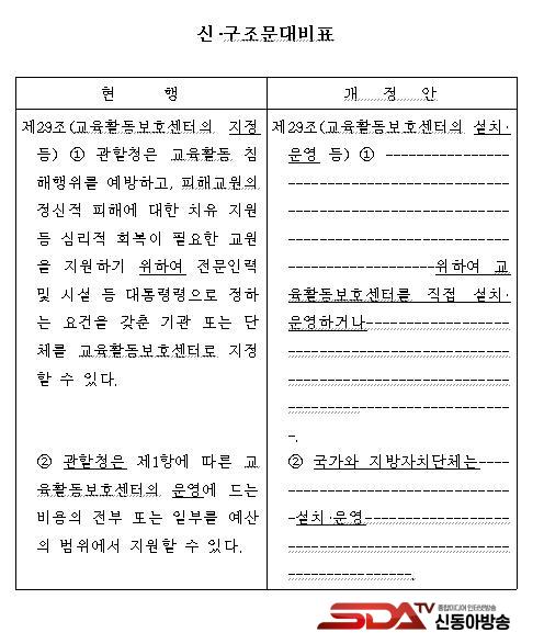 ¡à ÇöÇà¹ýÀº °üÇÒûÀÌ ±³À°È°µ¿ Ä§ÇØÇàÀ§¸¦ ¿¹¹æÇϰí, ÇÇÇØ±³¿øÀÇ Á¤½ÅÀû ÇÇÇØ¿¡ ´ëÇÑ Ä¡À¯ Áö¿ø µî ½É¸®Àû ȸº¹ÀÌ ÇÊ¿äÇÑ ±³¿øÀ» Áö¿øÇϱâ À§ÇÏ¿© ±³À°È°µ¿º¸È£¼¾ÅÍ(ÏÁ ±³¿øÄ¡À¯Áö¿ø¼¾ÅÍ)·Î ÁöÁ¤ÇÒ ¼ö ÀÖ´Ù°í ±ÔÁ¤Çϰí ÀÖ´Ù.