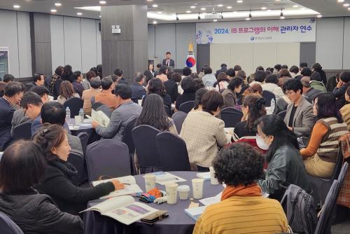 ÀÌ¿Í °ü·Ã, Áö³ 11ÀÏ¿¡´Â ³ªÁÖ ¿þ½ºÅÏ È£ÅÚ ´ë¿¬È¸Àå¿¡¼ ÃʵîÇб³ °ü¸®ÀÚ¸¦ ´ë»óÀ¸·Î ¡®2024. IB ÇÁ·Î±×·¥ÀÇ ÀÌÇØ¡¯ ¿¬¼ö¸¦ °³ÃÖÇß´Ù. À̹ø ¿¬¼ö¿¡´Â 120¿© ¸íÀÌ Âü¼®ÇØ IB ±³À°¿¡ ´ëÇÑ ³ôÀº °ü½É°ú ¿±â¸¦ º¸¿´´Ù.