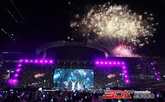 ¼öõ ¸íÀÇ °ü°´ÀÌ ÀÀ¿øºÀÀ» Èçµé¸ç ¿­±â¿¡ ÀÀ´äÇß°í, ¹«´ë À§ Á¶¸í°ú ´ëÇü LED ½ºÅ©¸°, ¹ãÇÏ´ÃÀ» ¼ö³õÀº ºÒ²É³îÀ̰¡ ¾î¿ì·¯Á® ÃàÁ¦ ºÐÀ§±â¸¦ ÀýÁ¤À¸·Î ²ø¾î¿Ã·È´Ù