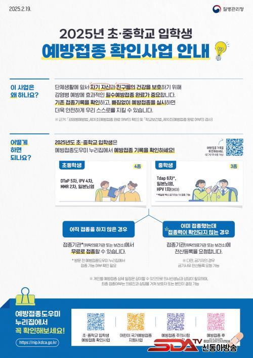 ÃʵîÇб³ ÀÔÇлý Çʼö ¹é½ÅÀº µðÇÁÅ׸®¾Æ¡¤ÆÄ»ódz¡¤¹éÀÏÇØ(DTaP), Æú¸®¿À(IPV), È«¿ª¡¤À¯Ç༺ÀÌÇϼ±¿°¡¤Ç³Áø(MMR), ÀϺ»³ú¿° µî 4Á¾ÀÌ´Ù. ¶Ç ÁßÇб³ ÀÔÇлý Çʼö ¹é½ÅÀº ÆÄ»ódz¡¤µðÇÁÅ׸®¾Æ¡¤¹éÀÏÇØ(Tdap), ÀϺ»³ú¿°¿¡´Ù ¿©Çлý¸¸ Á¢Á¾ÇÏ´Â »ç¶÷À¯µÎÁ¾¹ÙÀÌ·¯½º(HPV) µî 3Á¾ÀÌ´Ù.