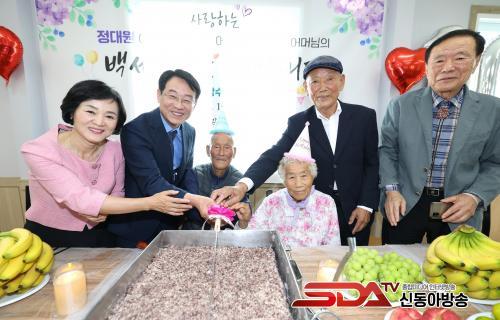 À̳¯ 100¼¼ ¾î¸£½Å²² µå¸®´Â û·ÁÀå°ú ÇÔ²² °úÀÏ¡¤ÂüÄ¡¼¼Æ® µî À§¹®Ç°À» Àü´ÞÇßÀ¸¸ç, ÄÉÀÌÅ© Ä¿ÆÃ°ú ±â³äÃÔ¿µÀ» ÅëÇØ Âü¼®ÀÚ ¸ðµÎ°¡ ¾î¸£½ÅµéÀÇ Àå¼ö¸¦ ÃàÇÏÇÏ´Â ½Ã°£À» °¡Á³´Ù.