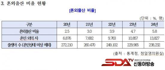ÀÌ¿Í ÇÔ²² È¥¿ÜÃâ»ê ºñÀ² ¿ª½Ã 2024³â 5.8%(13,827¸í)·Î ¿ª´ë ÃÖ°íÄ¡¸¦ ±â·ÏÇß´Ù. °áÈ¥À» ÇÏ¸é ¿ÀÈ÷·Á °¢Á¾ ÇýÅÃÀÌ ÁÙ¾îµå´Â Çö Á¦µµ ±¸Á¶°¡ È¥ÀνŰí Áö¿¬°ú È¥¿ÜÃâ»ê Áõ°¡¸¦ µ¿½Ã¿¡ ºÒ·¯¿Ô´Ù´Â ºÐ¼®ÀÌ´Ù.