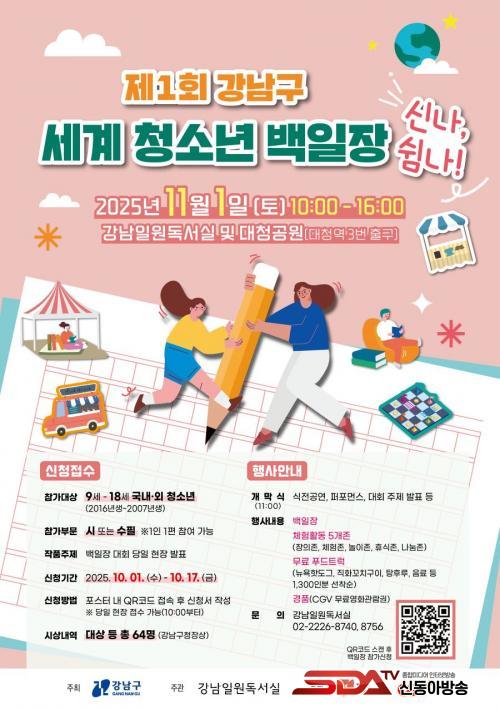 ¹éÀÏÀå¿¡´Â 9¼¼ºÎÅÍ 18¼¼±îÁö(2016³â»ý~2007³â»ý) ±¹³»‧¿Ü ±¹Àû û¼Ò³â ´©±¸³ª Âü¿©ÇÒ ¼ö ÀÖ´Ù. Çà»ç ´çÀÏ ÇöÀå¿¡¼ ±Û¾²±â ÁÖÁ¦°¡ Á¦½ÃµÇ¸ç, ½Ã ¶Ç´Â ¼öÇÊ Áß ÇÑ ÆíÀ» ÀÛ¼ºÇØ Á¦ÃâÇÏ¸é µÈ´Ù. Æ÷½ºÅÍÀÇ ±âÀçµÈ QRÄڵ带 ÅëÇØ 10¿ù 17ÀϱîÁö »çÀü ½ÅûÀ» ÇÒ ¼ö ÀÖÀ¸¸ç, Çà»ç ´çÀÏ ÇöÀå Á¢¼öµµ °¡´ÉÇÏ´Ù. Âü°¡ÀÚ´Â ½ÅºÐ È®ÀÎÀ» À§ÇØ ÇлýÁõÀ̳ª ¿©±ÇÀ» ÁöÂüÇØ¾ß ÇÑ´Ù.