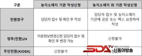 ½Åû ¹æ¹ýÀº ³óÁö ÀÓ´ëÂ÷, ½Ã¼³ ¼³Ä¡ ½Ã ³óÁö´ëÀå ÀÌ¿ëÁ¤º¸ º¯°æ½Åû¼(³óÁö¹ý ½ÃÇà±ÔÄ¢ º°Áö Á¦58È£ÀÇ2)¸¦ ÀÛ¼ºÇØ º¯°æ »çÀ¯°¡ ¹ß»ýÇÑ ³¯·ÎºÎÅÍ 60ÀÏ À̳»¿¡ ³óÁö ¼ÒÀçÁö °üÇÒ À¾¸éµ¿ ÇàÁ¤º¹Áö¼¾ÅÍ¿¡ ¹æ¹®Çϰųª Á¤ºÎ24, ¹Î¿ø24 µî ÀÎÅͳÝÀ¸·Î ½Å°íÇÏ¸é µÈ´Ù.