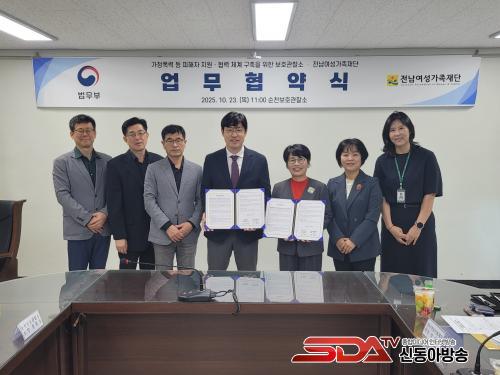 [½Åµ¿¾Æ¹æ¼Û ¼øÃµ=¹Ú±¤¿Á±âÀÚ] Àü³²¿©¼º°¡Á·Àç´Ü(¿øÀå ¼ºÇý¶õ)Àº 10¿ù 23ÀÏ(¸ñ), ¼øÃµº¸È£°üÂû¼Ò(¼ÒÀå È«À缺)¿Í °¡Á¤Æø·Â, ½ºÅäÅ·, ±³Á¦Æø·Â µî Æø·Â ÇÇÇØÀÚ Áö¿ø ¹× ¿¹¹æ±³À°À» ÅëÇÑ Áö¿ª»çȸ ¾ÈÀü¸Á ±¸Ãࡤ°­È­¸¦ À§ÇØ ¾÷¹«Çù¾à(MOU)À» ü°áÇß´Ù°í ¹àÇû´Ù.