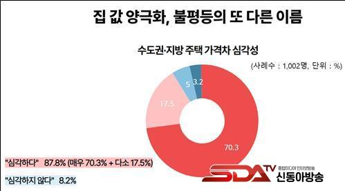 ±¹¹ÎÀÇ 87.8%°¡ ¼öµµ±Ç°ú Áö¹æÀÇ Áý°ª °ÝÂ÷¸¦ ¡®½É°¢ÇÏ´Ù¡¯°í Æò°¡ÇßÀ¸¸ç, ±×Áß ¡®¸Å¿ì ½É°¢ÇÏ´Ù¡¯´Â ÀÀ´äÀÌ 70.3%¿¡ ´ÞÇß´Ù. 30´ë(88.9%), 60´ë(92.0%), ºÎ»ê¡¤¿ï»ê¡¤°æ³²(95.8%), ÁßµµÃþ(89.9%) µî ¼¼´ë¿Í Áö¿ª, ÀÌ³ä ±¸ºÐ ¾øÀÌ ¸ðµÎ ºÎµ¿»ê °ÝÂ÷¸¦ ÀνÄÇß´Ù. Áý°ª ºÒÆòµî ÇØ°áÀÇ ÇÙ½É °úÁ¦·Î´Â¡®Áö¹æ ÀÏÀÚ¸® È®Ãæ¡¯(28.9%),¡®ºÎµ¿»ê Åõ±â ¾ïÁ¦ ¹× ¼¼±Ý °È¡¯(25.6%)°¡ °¡Àå ³ô¾Ò°í,¡®¼öµµ±Ç ÁÖÅà °ø±Þ È®´ë¡¯(17.6%),¡®Ã»³â¡¤¼¹Î ÁÖ°Å Áö¿ø¡¯(15.5%)ÀÌ µÚ¸¦ À̾ú´Ù.