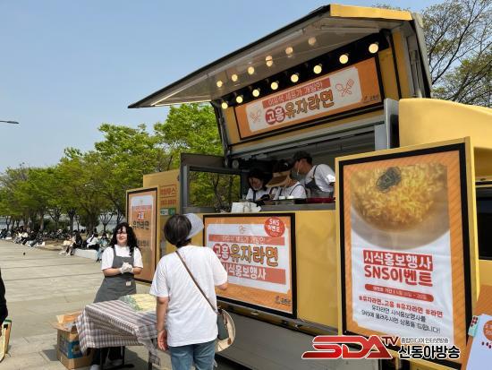 ÃàÁ¦ ÇöÀå¿¡¼­´Â ´©±¸³ª ¹«·á·Î À¯ÀÚ¶ó¸éÀ» ¸Àº¼ ¼ö ÀÖ´Â ½Ã½Ä ºÎ½º°¡ ¸¶·ÃµÈ´Ù. À¯ÀÚ¶ó¸éÀº °íÈï»ê À¯ÀÚ¿¢±â½º¸¦ ³ÖÀº ´ß°í±â À°¼ö·Î ¸¸µé¾îÁ®, ù ¼ù°¡¶ôºÎÅÍ »óÅ­ÇÔÀÌ ÀÔ¾ÈÀ» °¨½Î°í ±íÀº ±¹¹° ¸ÀÀÌ À̾îÁø´Ù. À¯ÀÚ Æ¯À¯ÀÇ »ê¶æÇÔ°ú ¶ó¸éÀÇ °¨Ä¥¸ÀÀÌ ¾î¿ì·¯Á®, ±âÁ¸ ¶ó¸é°ú´Â ÀüÇô ´Ù¸¥ ¡®°íÈ︸ÀÇ ÇÑ ±×¸©¡¯À» °æÇèÇÒ ¼ö ÀÖ´Ù. ƯÈ÷ ¿ÃÇØ ÃàÁ¦¿¡¼­´Â À¯ÀÚ¸¦ Ȱ¿ëÇÑ À¯ÀÚ±è¹ä°ú ÇÔ²² À¯ÀÚ¶ó¸éÀ» ¼±º¸¿© ¹æ¹®°´µéÀÇ ¿À°¨À» ÇÑÃþ ´õ dz¼ºÇÏ°Ô ÀÚ±ØÇÒ ¿¹Á¤ÀÌ´Ù.
