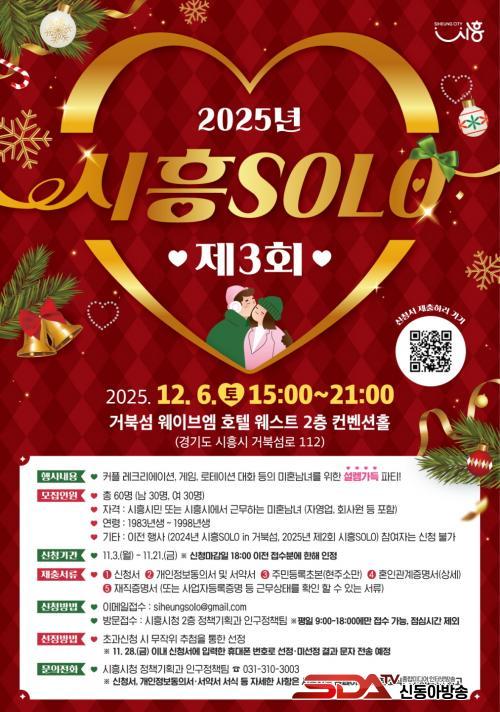 [½Åµ¿¾Æ¹æ¼Û ½ÃÈï½Ã=À̽ŵ¿±âÀÚ] ½ÃÈï½Ã´Â ¸¸³²ÀÇ ±âȸ°¡ ºÎÁ·ÇÑ Ã»Ãá³²³àµé¿¡°Ô ¼ÒÁßÇÑ Àο¬À» ¸¸³¯ ±âȸ¸¦ Á¦°øÇÏ°í °áÈ¥ ģȭ ºÐÀ§±â¸¦ Á¶¼ºÇϱâ À§ÇØ ¡®2025³â Á¦3ȸ ½ÃÈï ¼Ö·Î(SOLO)¡¯ Çà»ç¸¦ °³ÃÖÇϰí, ¹ÌÈ¥³²³à Âü°¡ÀÚ¸¦ ¸ðÁýÇÑ´Ù.