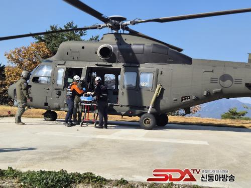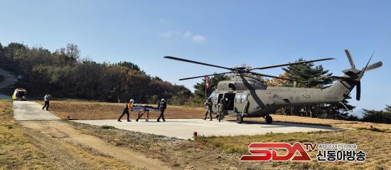 ¡Û À̹ø ÈÆ·ÃÀº ºÏÁ¢°æ µµ¼­Áö¿ªÀÎ ±³µ¿¿¡¼­ ÀÀ±ÞȯÀÚ ¹ß»ý ½Ã, ±º»çÅëÁ¦±¸¿ªÀ¸·Î ÀÎÇÑ ºñÇàÁ¦ÇÑ µîÀ¸·Î ¼Ò¹æÇ×°ø´ë Çï±â Ã⵿ÀÌ ¾î·Á¿î »óȲÀ» °¡Á¤Çϰí, ±º ¸Þµð¿Â Çï±â¸¦ ±ä±Þ ÅõÀÔÇØ ȯÀÚ¸¦ À̼ÛÇÏ´Â ½ÇÁ¦ »óȲ Áß½ÉÀÇ ÇÕµ¿ÈÆ·ÃÀ¸·Î ÁøÇàµÆ´Ù.