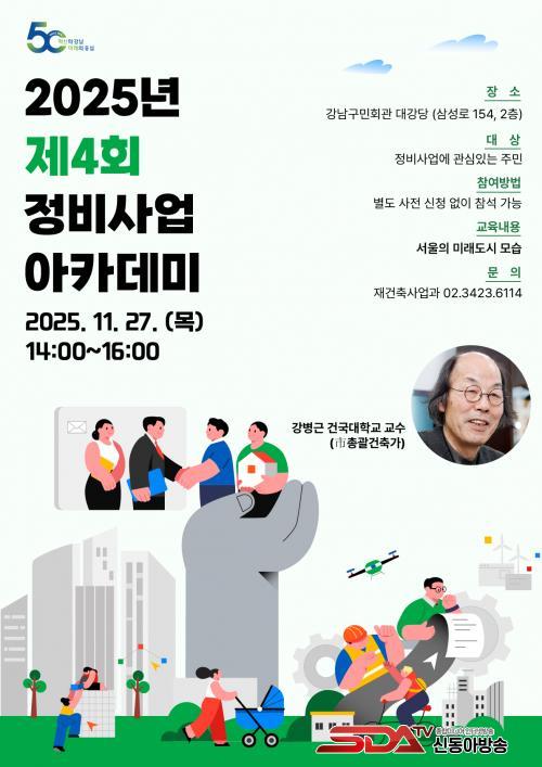 [½Åµ¿¾Æ¹æ¼Û °­³²±¸=À̽ŵ¿±âÀÚ] ²ÞÀÌ ¸ðÀÌ´Â µµ½Ã, ¹Ì·¡¸¦ ±×¸®´Â °­³²±¸°¡ ¿À´Â 11¿ù 27ÀÏ ¿ÀÈÄ 2½ÃºÎÅÍ 4½Ã±îÁö °­³²±¸¹Îȸ°ü 2Ãþ ´ë°­´ç¿¡¼­ ¡®Á¦4ȸ Á¤ºñ»ç¾÷ ¾ÆÄ«µ¥¹Ì¡¯¸¦ °³ÃÖÇÑ´Ù. ¿ÃÇØ ¸¶Áö¸·À¸·Î ¿­¸®´Â À̹ø °­¿¬Àº ±âÁ¸ Á¤ºñ»ç¾÷ ±³À°°ú ´Þ¸®, °­³²ÀÌ ÇâÈÄ 100³âÀ» ÇâÇØ ³ª¾Æ°¥ µµ½Ã°èȹÀÇ ¹æÇâÀ» ±¹³»¿Ü Àü¹®°¡ÀÇ ½Ã¼±À¸·Î Á¶¸ÁÇÑ´Ù´Â Á¡¿¡¼­ Ưº°ÇÏ´Ù.