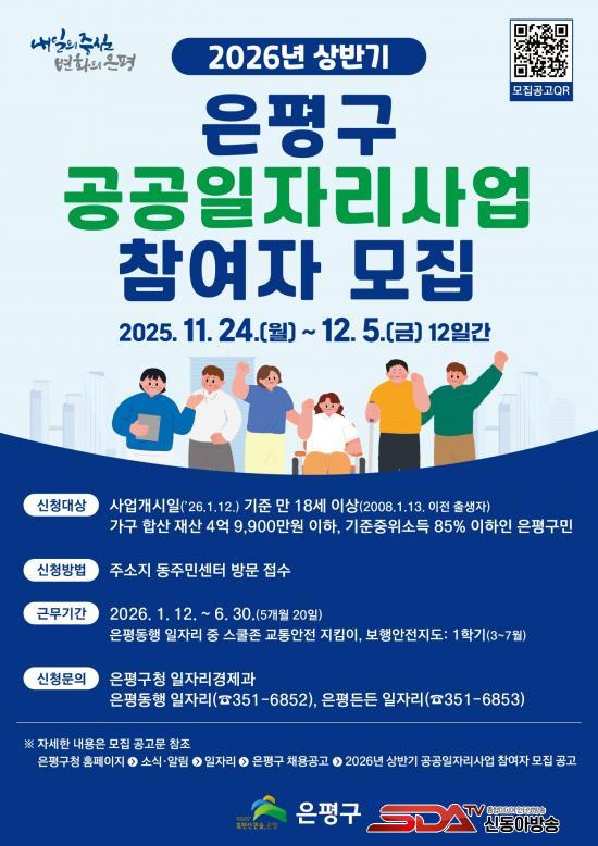 ¼±¹ßµÈ Âü¿©ÀÚ´Â 2026³â 1¿ù 12ÀϺÎÅÍ ±¸Ã» ¹× °ü³» 16°³ µ¿Áֹμ¾ÅÍ µî¿¡¼ ±Ù¹«ÇÏ°Ô µÈ´Ù. ÀÓ±ÝÀº 2026³â ÃÖÀúÀÓ±ÝÀ¸·Î ½Ã°£´ç 10,320¿øÀÌ Áö±ÞµÇ¸ç, 4´ë º¸Çè °¡ÀÔ, ÁÖÈÞ¼ö´ç, ¿ùÂ÷¼ö´ç, °£½Äºñ µî ´Ù¾çÇÑ º¹¸®ÈÄ»ýµµ Á¦°øµÈ´Ù.