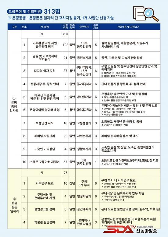¸ðÁý ±â°£Àº ¿À´Â 24ÀϺÎÅÍ ³»´Þ 5ÀϱîÁö·Î, ÃÑ 12ÀÏÀÌ´Ù. ¸ðÁý ÀοøÀº ¡ãÀºÆòµ¿Çà ÀÏÀÚ¸® 286¸í ¡ãÀºÆòµçµç ÀÏÀÚ¸® 27¸íÀ¸·Î ÃÑ 313¸íÀÌ´Ù.