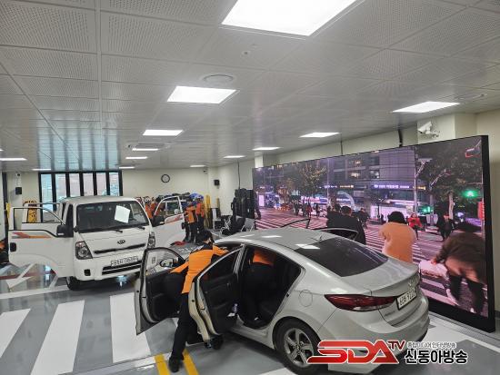 »ç°íÇöÀå½Ç½ÀÀåÀº °¡·Î 19.8m, ¼¼·Î 8.4m ±Ô¸ðÀÇ °ø°£¿¡ ¿Õº¹ 4Â÷¼± µµ·Î ¿Í Ⱦ´Üº¸µµ¸¦ Á¶¼ºÇϰí, ´ëÇü LED ½ºÅ©¸°À» ÅëÇØ ±³Åë»ç°í¡¤È­Àç ÇöÀå µîÀÇ ¿µ»óÀ» ±¸ÇöÇØ ½Ç°¨Çü ÈÆ·ÃÀÌ °¡´ÉÇϵµ·Ï Çß´Ù. ¶Ç ÇÑÂÊ¿¡´Â ö°ñ±¸Á¶ÀÇ °ø»çÇöÀåÀ» º°µµ·Î ±¸ÃàÇØ Ãß¶ô¡¤³«ÇϹ° µî °ø»çÀå »ç°í ´ëÀÀ ÈÆ·Ãµµ º´ÇàÇÒ ¼ö ÀÖ´Ù.
